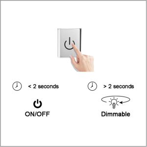 4. touch time >2 seconds, dimming function hold finger to the alluminum body until the brightness increases or decreases to desired level