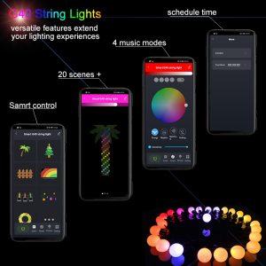 3. 12M(39.4ft) 10M(32.8ft) string lights+2M(6.6ft) controller cable with adapter, 50 LED bulbs